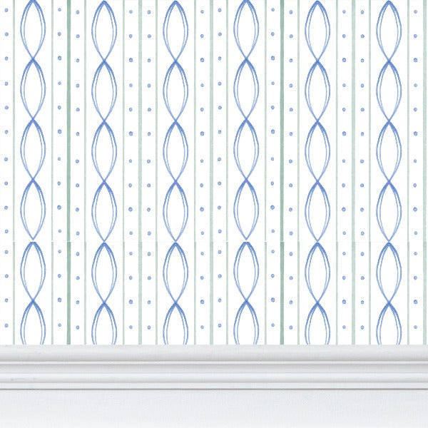 Bring a fresh, hand-painted touch to your walls with this peel-and-stick wallpaper featuring watercolor-style stripes, dots, and flowing blue geometric motifs. Easy to apply and remove, it adds a playful yet modern vibe to any space—perfect for accent walls, kids’ rooms, or creative studios.